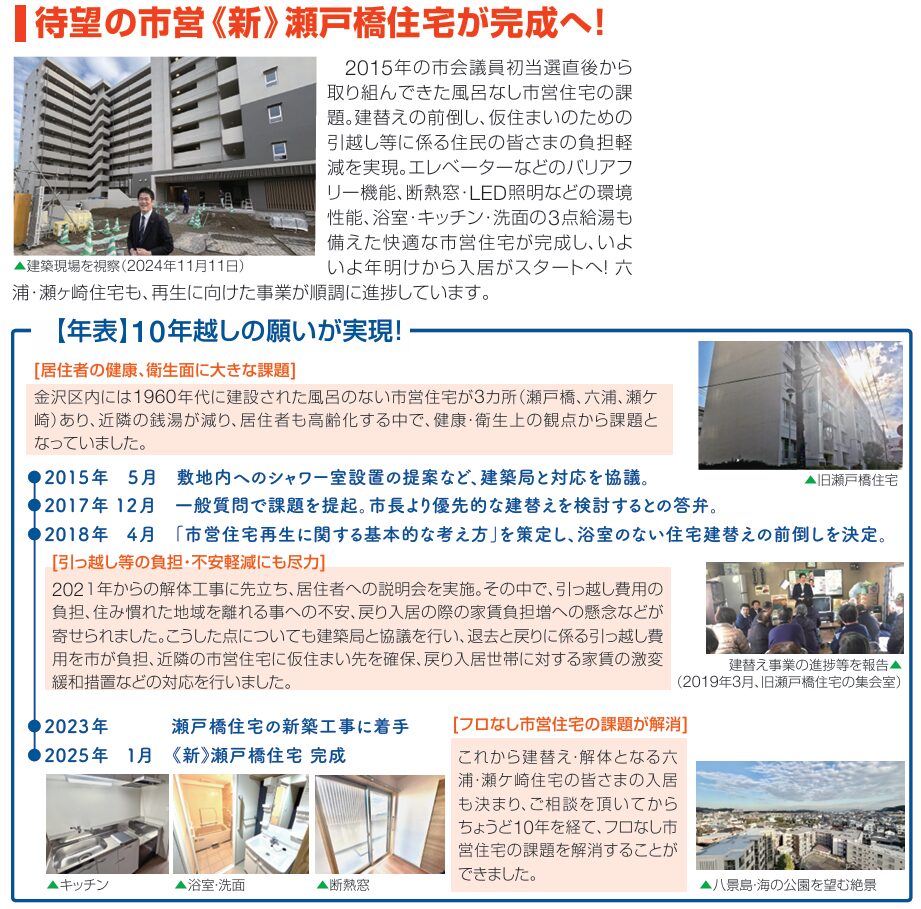 旧富岡倉庫地区の跡地利用について。急激に高齢化、人口減少が続いている金沢区の課題解決へ、若い世帯の流入を促す取組みを積極的に仕掛けていかねばならないと考えます。そこで、戦後60年間、米軍に接収され平成21年に国に返還された同地について、隣接する公務員住宅跡地とセットで、マンションなどの住宅地としての活用を提案しました。