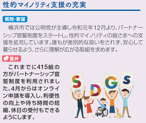 横浜市では公明党も後押しし法制定以前から全国の自治体をリードする取組を進めていますが、4年度は各施策をさらに大幅に拡充します。