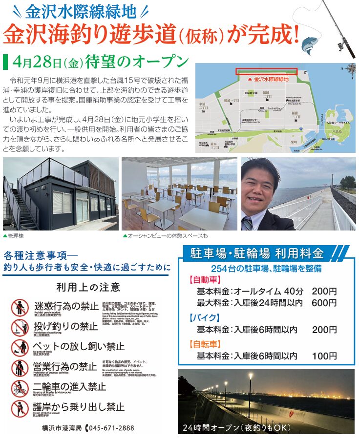 令和2年度から金沢漁港・柴漁港の大規模な改修工事に着手し、桟橋などのリニューアルが進んでいます。将来的に飲食店なども新設し、シャトルバスでクルーズ船旅客をアウトレットパークや八景島、漁港に案内することも計画しています。