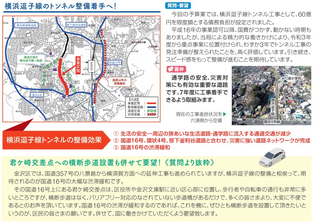 ・横浜逗子線(六浦地区・トンネル整備+開通へ)