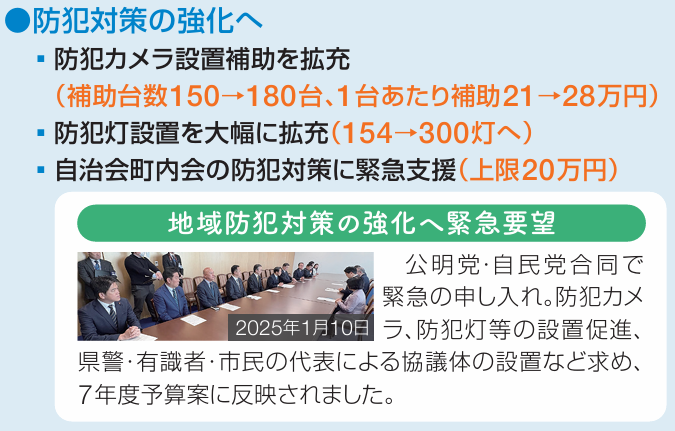 市民の誰もが犯罪や事故に巻き込まれる恐れがあることから、防犯対策と同様「市民生活の安心に欠かせないセーフティネットとして必要」と、公明党議員団として視察や研究を重ねながら、制定を求めてきたものです。