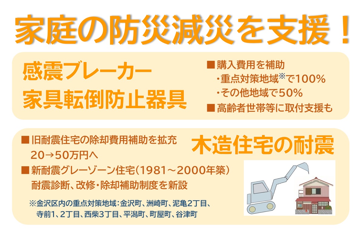 木造住宅密集地域において感震ブレーカーの設置が更に進むよう、無償配布や設置補助など、新たな方策の検討を要望。